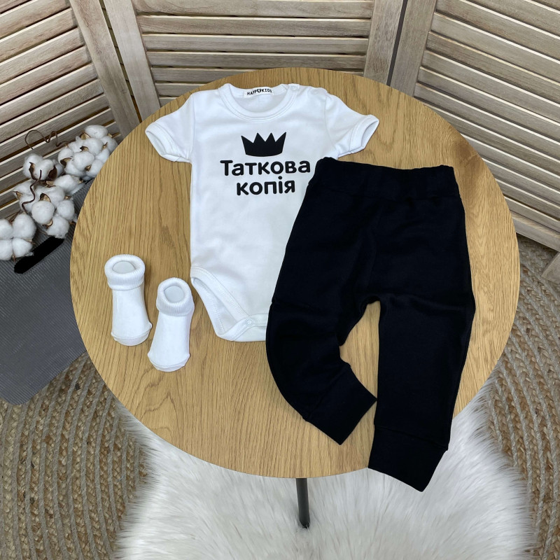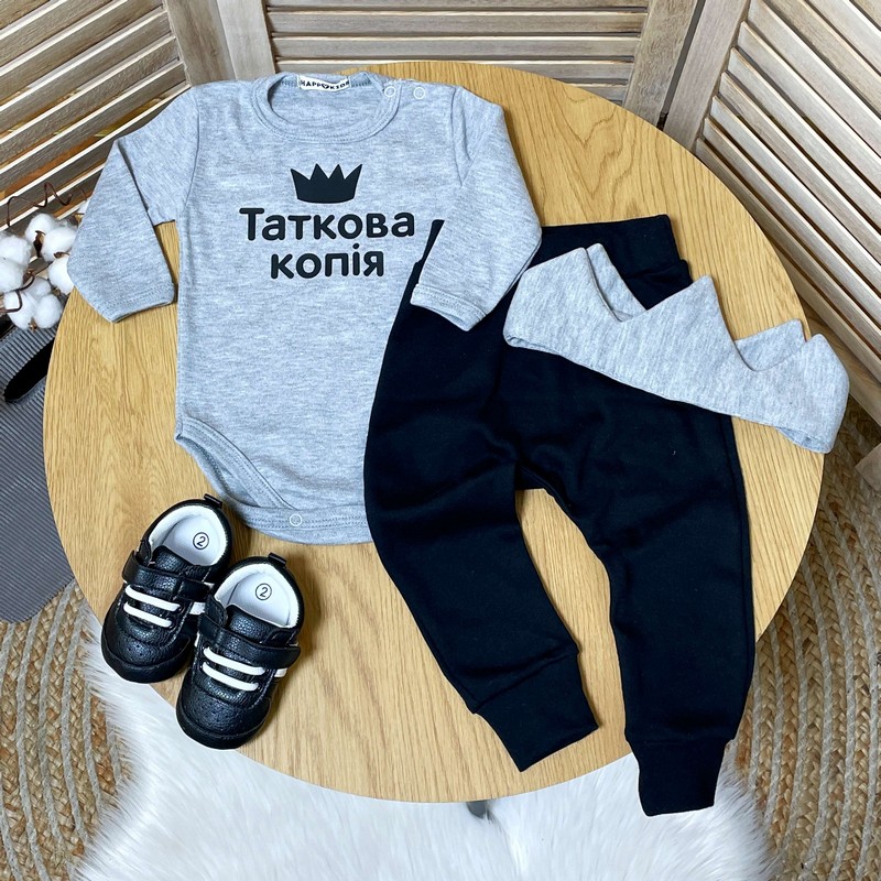Якісний бодік для хлопчика з оригінальним написом - прекрасний на свято чи фотосесію.