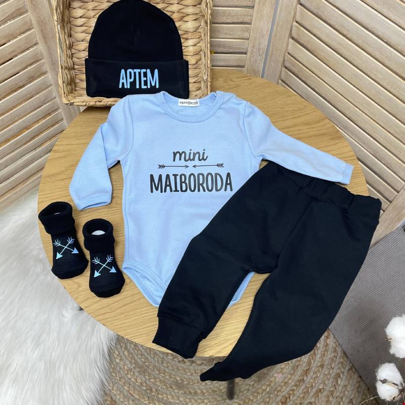 Дизайн: боді з написом «Mini» та прізвищем малюка; можливість персоналізації шрифту та кольору принта.