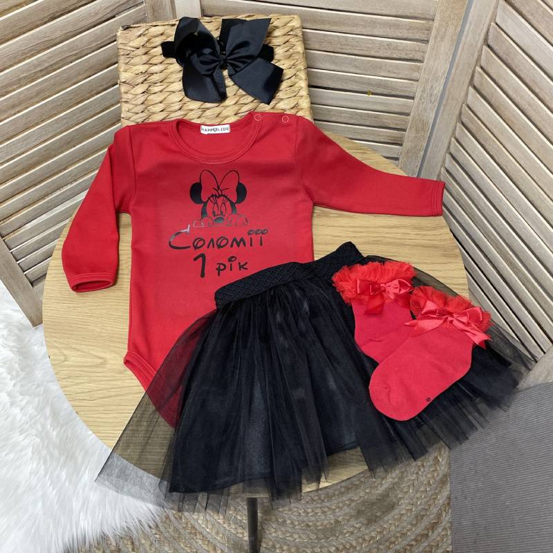 Боді на перший день народження дівчинці -1 рік з Мінні іменний