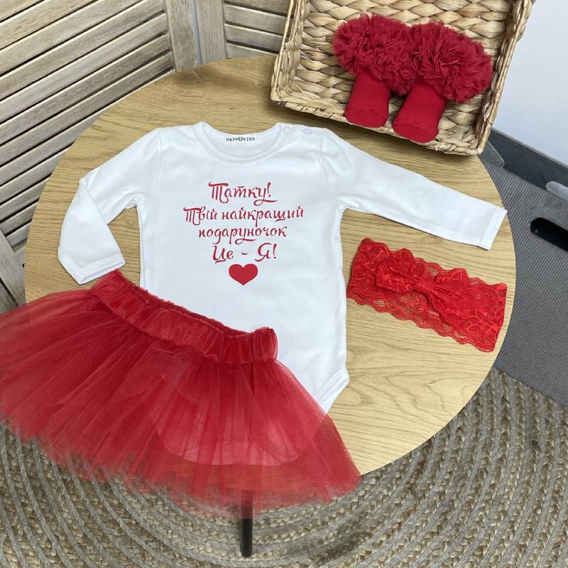 Боді-привітання "Татку! Твій найкращий подаруночок — це я" — ніжний, зворушливий і креативний подарунок новоспеченому батькові, який викличе усмішку та розчулення.