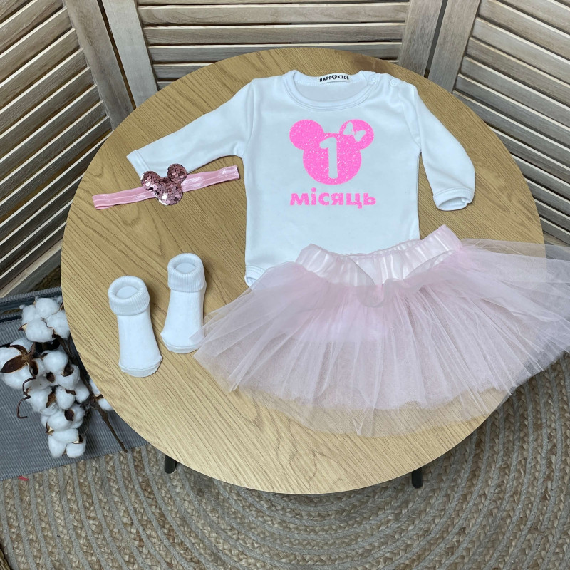 Якісний бодік  з циврами для дівчинки для фото по місяцях - прекрасний вібір для щомісячної фотосесії "Мені 1 місяць".