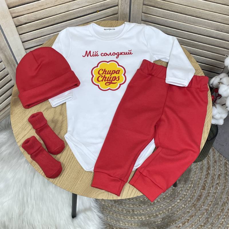 Дизайн: стильний принт із написом "Мій солодкий Чупа Чупс", яскравий, стійкий до прання.