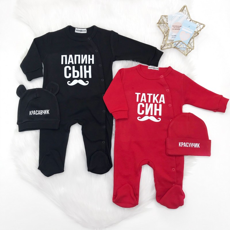 Зручний оригінальний сліп для новонародженого з прикольним написом Папин син - чудовий одяг для найменших крихіток. Чудово підходить в пологовий будинок, оригінальний подарунок новонародженій дитині.