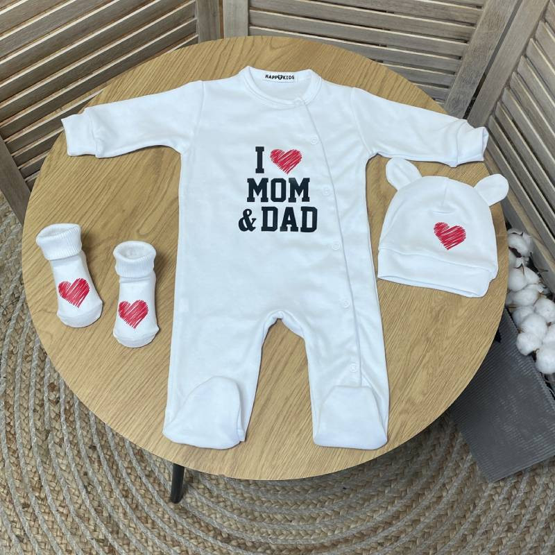 Чоловічок-сліп новонародженому з написом "I love mom&dad"