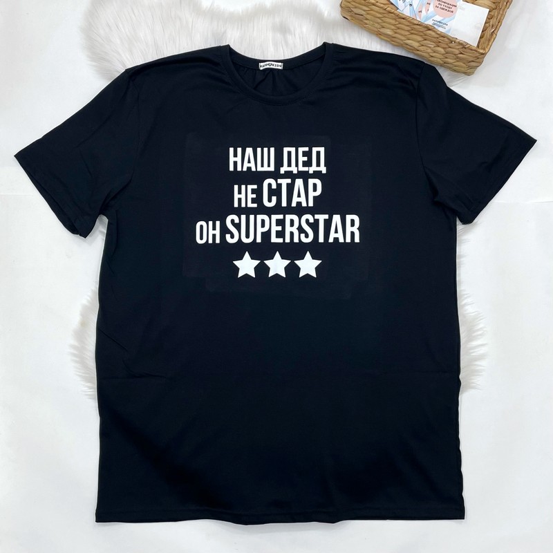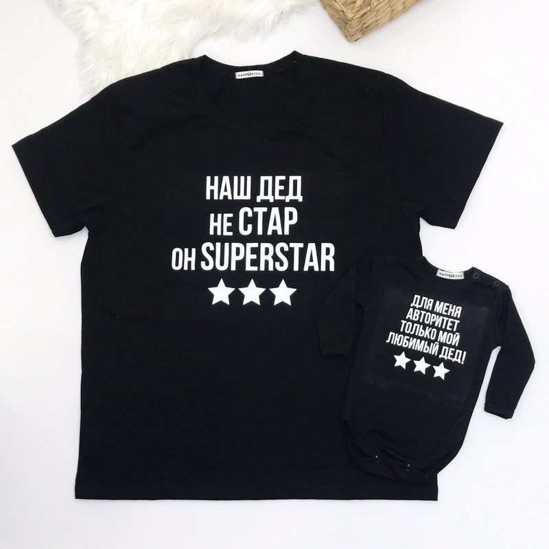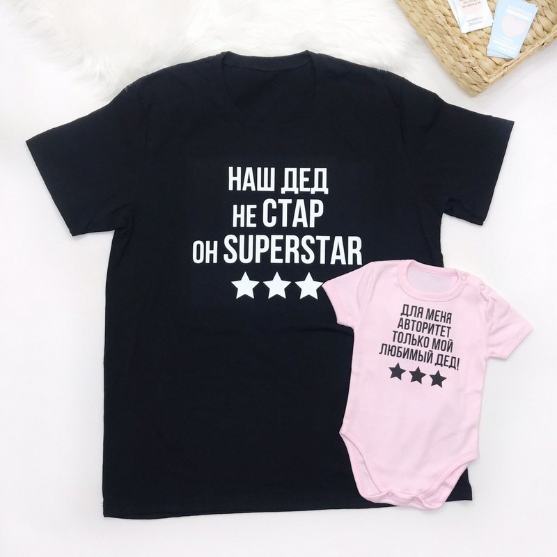 Базова однотонна чоловіча футболка з оригінальним написом - гарна ідея для подарунку дідусю, для сімейної фотосесії, родинних свят.