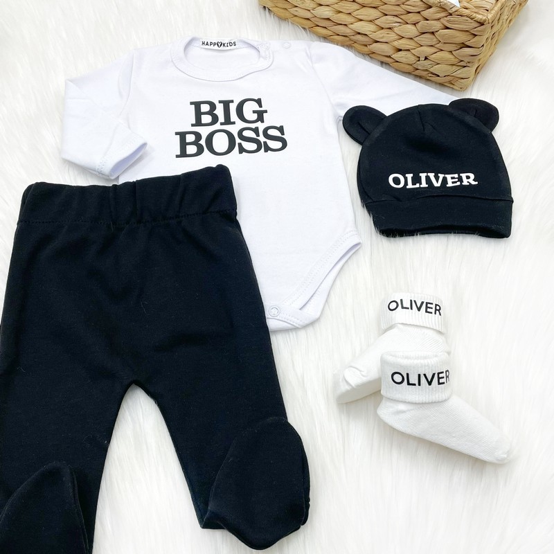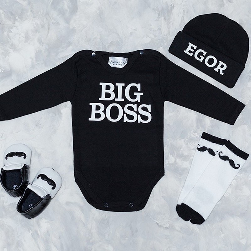 Костюм для новонародженого хлопчика з популярним написом Біг бос - стильний та зручний для малюка. Натуральна м'яка тканина чудово підходить для найменших діток.