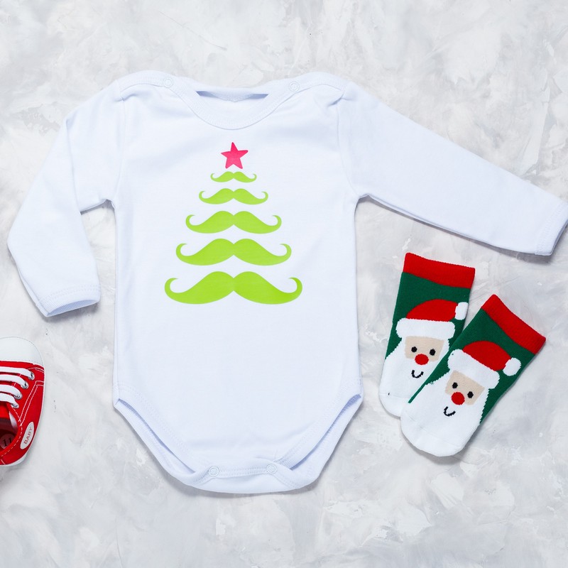 Оригінальний стильний новорічний копмлект для новонародженого на перший новий рік. Чудовий вибір одягу на перше свято малюка.