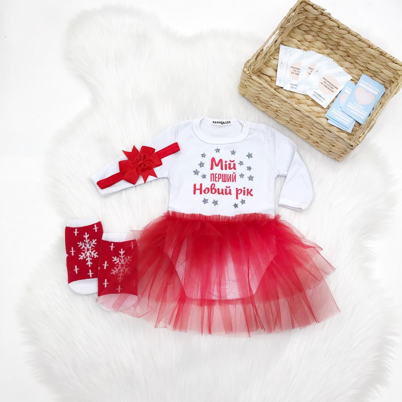 Комплект новорічний для дівчинки "Мій перший Новий рік" із зірками гліттер