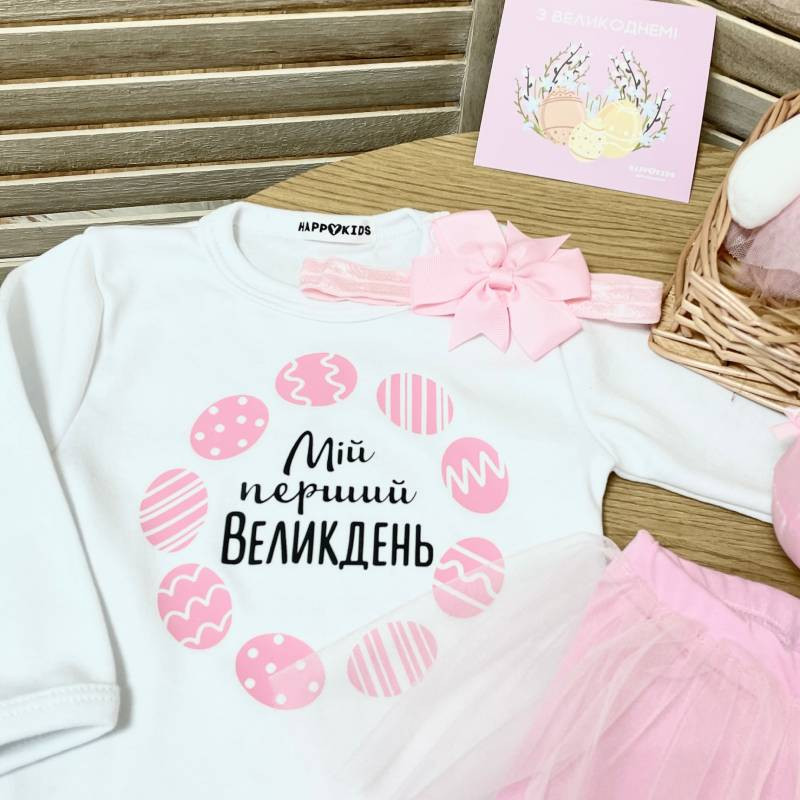 Додайте чарівний акцент до святкового гардеробу вашої маленької принцеси з нашим комплектом дитячого одягу з написом "Перший Великдень". Зробіть цей Великдень незабутнім для вашої родини та запечатліть найкращі моменти разом з нами!