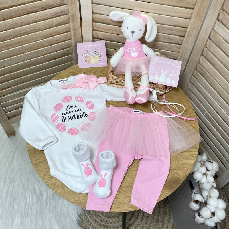 Замовте комплект "Перший Великодній кошик" уже сьогодні, щоб ваша маленька дівчинка виглядала неперевершено цього Великодня! Цей комплект не тільки забезпечує комфорт вашому малюку, але й додасть яскравих барв у ваші великодні спогади.
