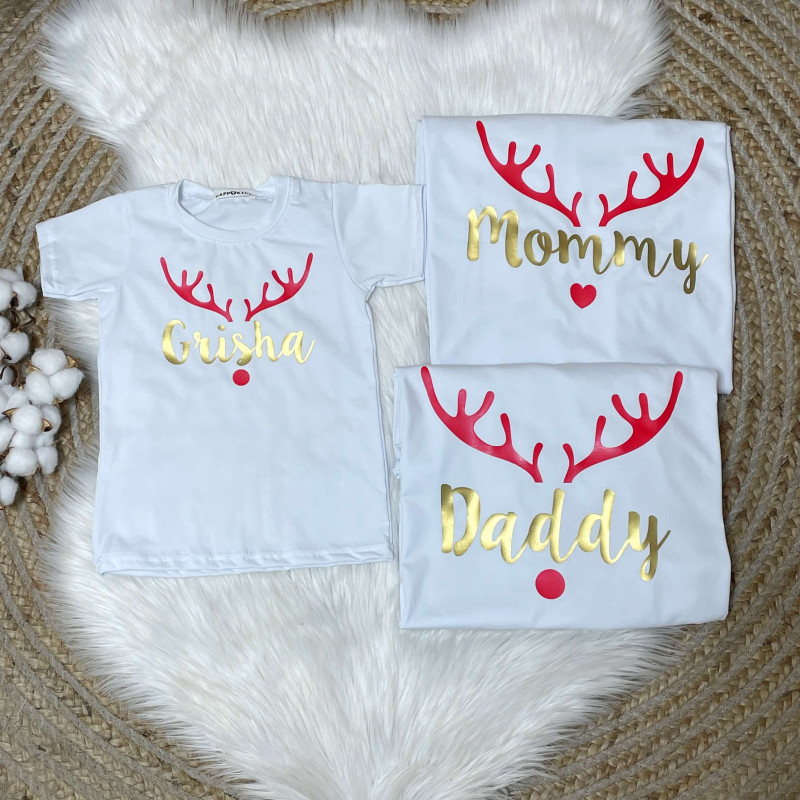 Новорічні футболки в одному стилі з оригінальним написом найкращий вибір для всієї родини ідеально підходить одяг на перший Новий рік дитини. Також чудова ідея для подарунку, сімейної фотосессії або новорічного родинного свята.