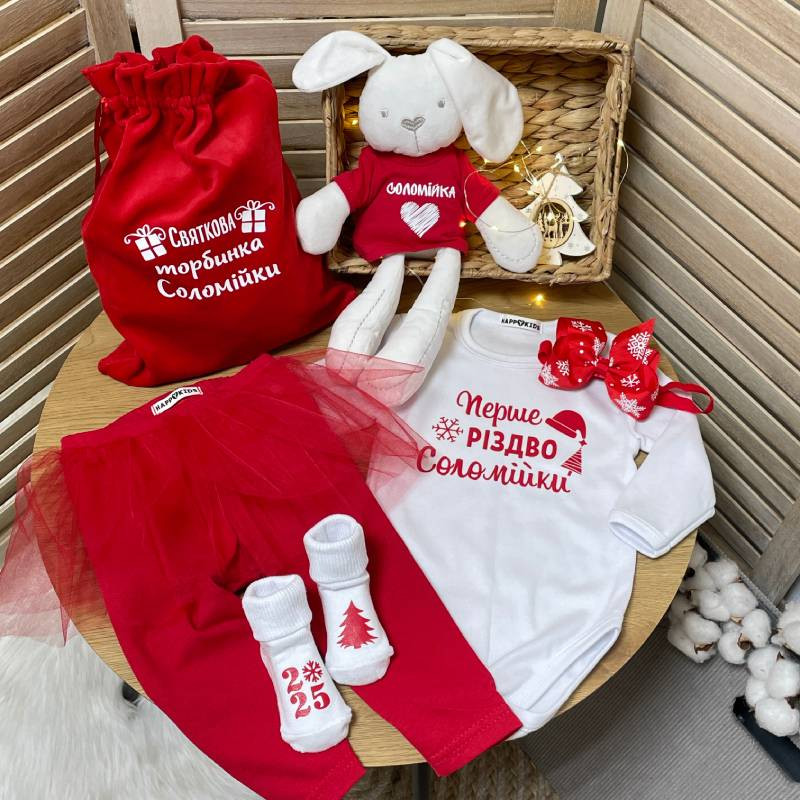 Святкова новорічна торбинка з одягом для хлопчика на перше Різдво - це ідеальний спосіб відзначити свято та зробити його особливим для вашого малюка. Готовий подарунок новонародженому на його перші зимові свята