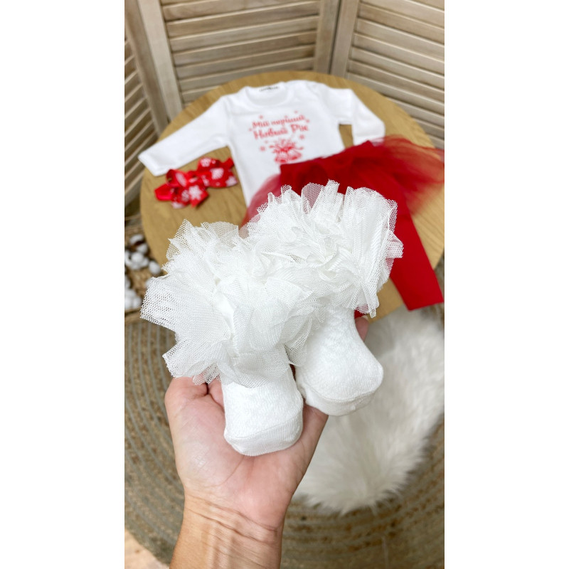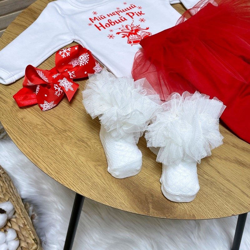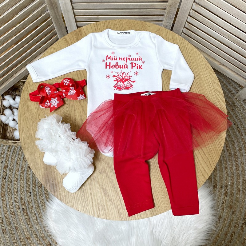 Нарядний універсальний новорічний комплект з боді для дівчинки підійде новородженій дівчинці або дитині до року. Доповнюй будь-якими аксесуарами на свій смак і створюй свій неповторний новорічний образ.