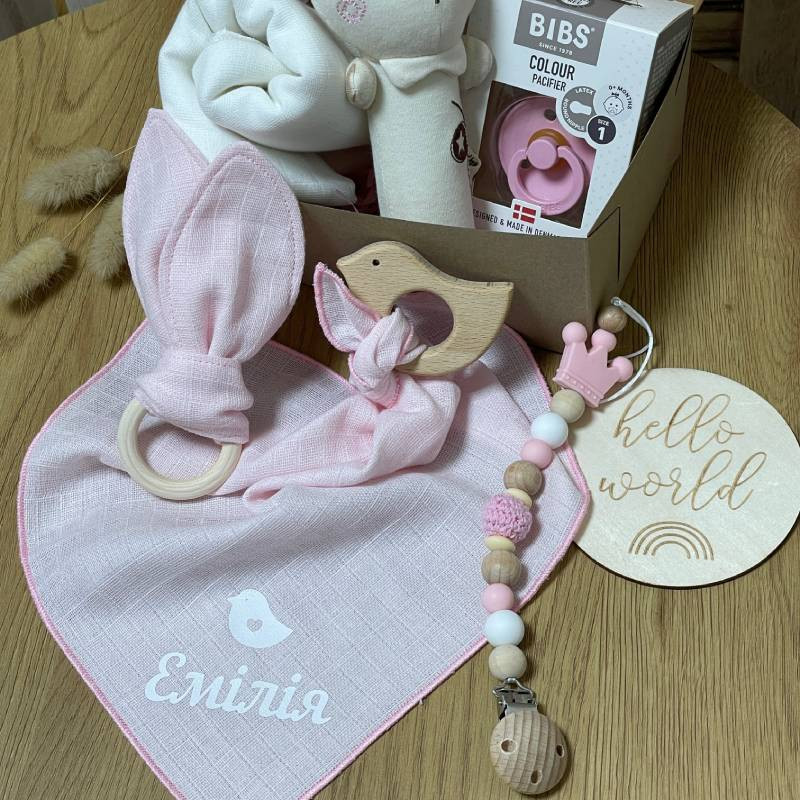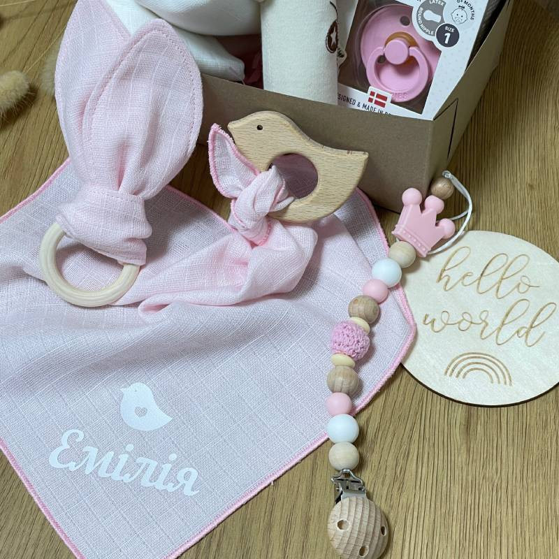 Подарунковий бокс для новонародженої дівчинки з карткою Hello world