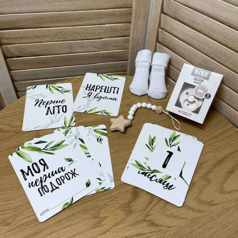 Подарунковий набір новонародженому з картками для фото гілочки
