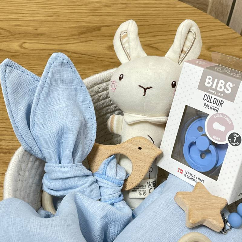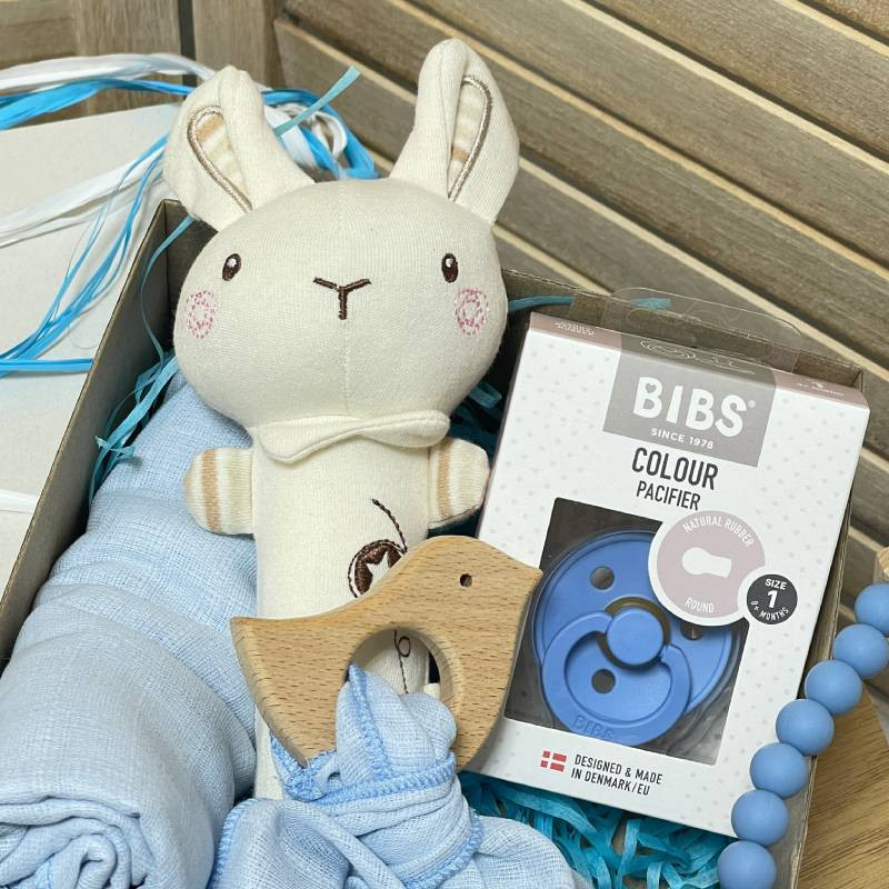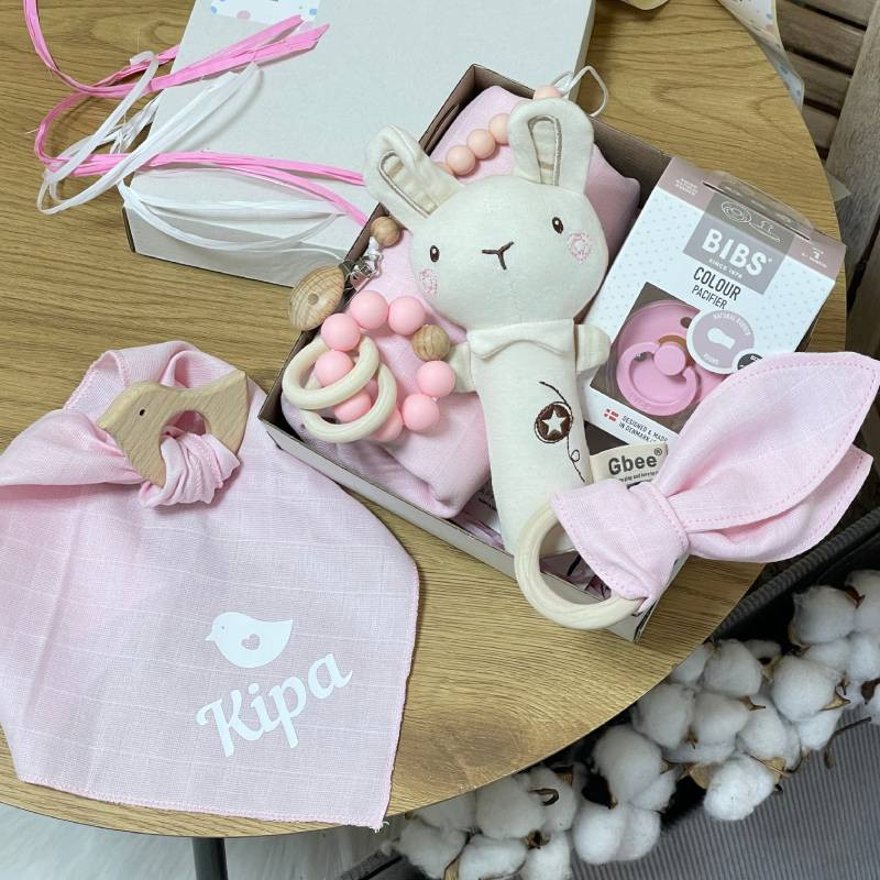 - Іменна хустинка з гризунцем-пташечкою: Особистий аксесуар з ім'ям малюка, який надає боксу особливого шарму.