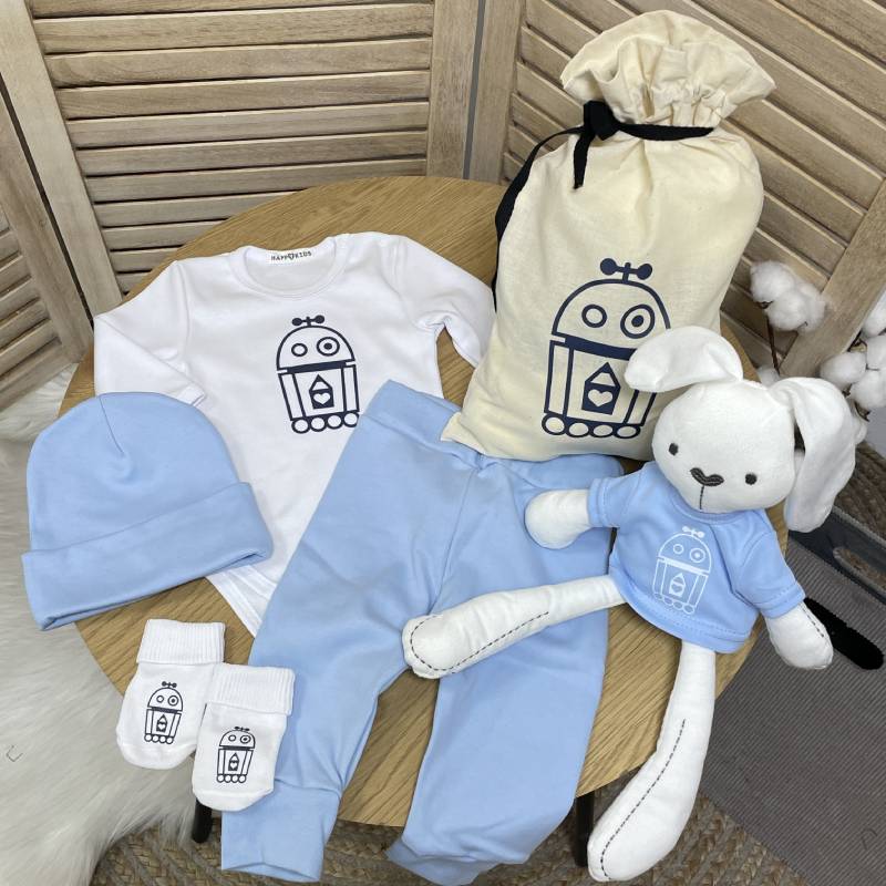 Переваги: корпоративний подарунок для новонародженого з брендуванням, індивідуальний дизайн під компанію, практичний набір одягу для немовляти, підвищує лояльність співробітників і клієнтів, ідеальний варіант для HR-подарунків та welcome box
