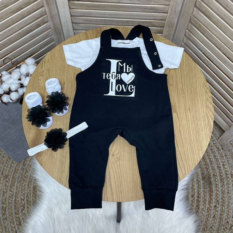 Також, вас і вашу дитину, обов'язково порадує приємний на дотик матеріал. А також якість виробу. Який можна прати за невеликої температури, і навіть гладити з виворітного боку. Для того щоб принт на напівкомбінезоні на кнопочках «Ми тобі Love» завжди мав бездоганний зовнішній вигляд.