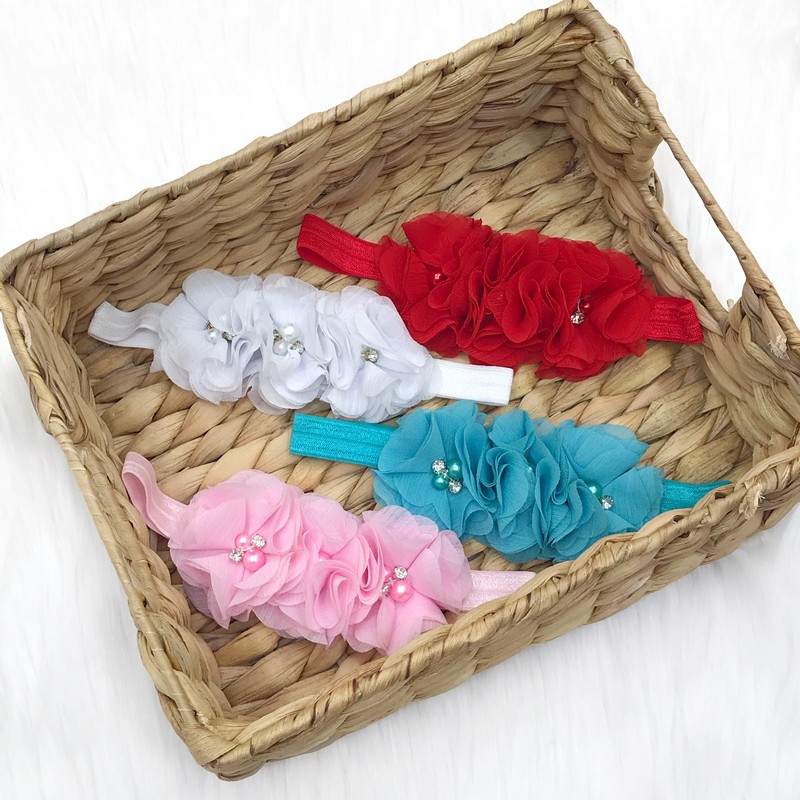 М'яка еластична пов'язка для маленьких дівчат з квіточками - красивий та стильний аксесуар для новонародженої дівчинки.