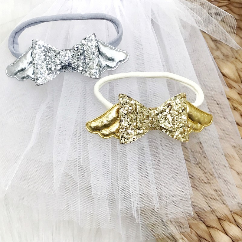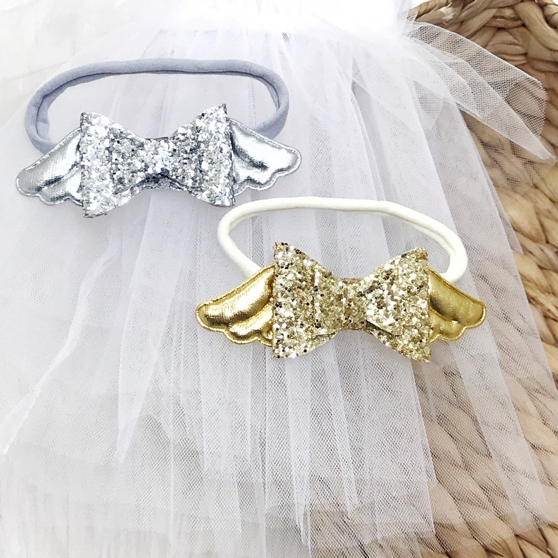 Бантик повязка новорожденной с крылышками ангела 0-1 год