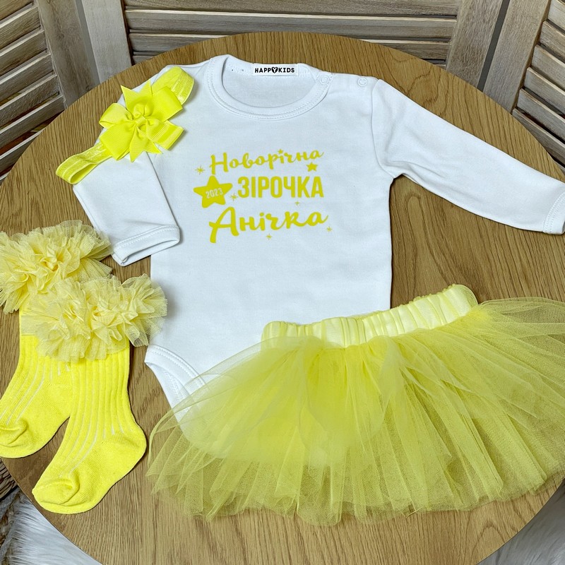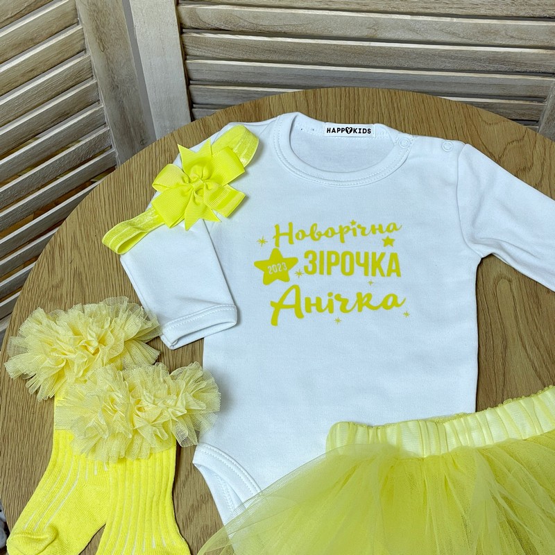 Стильный и яркий боди с именем и оригинальной надписью новогодняя звездочка девочке на первый новый год!