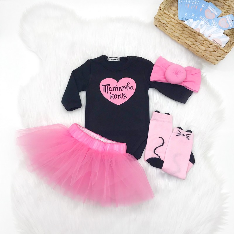 Качественный бодик для девочки с оригинальной надписью Папочная копия – прекрасный на праздник или фотосессию. Также необычный подарок на день рождения папы.