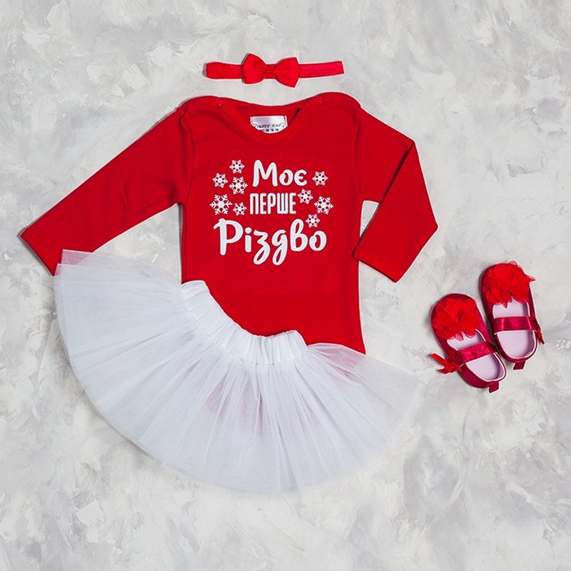 Нарядный универсальный боди подойдет мальчику и девочке. Дополняй любыми аксессуарами на свой вкус и создавай свой неповторимый новогодний образ.