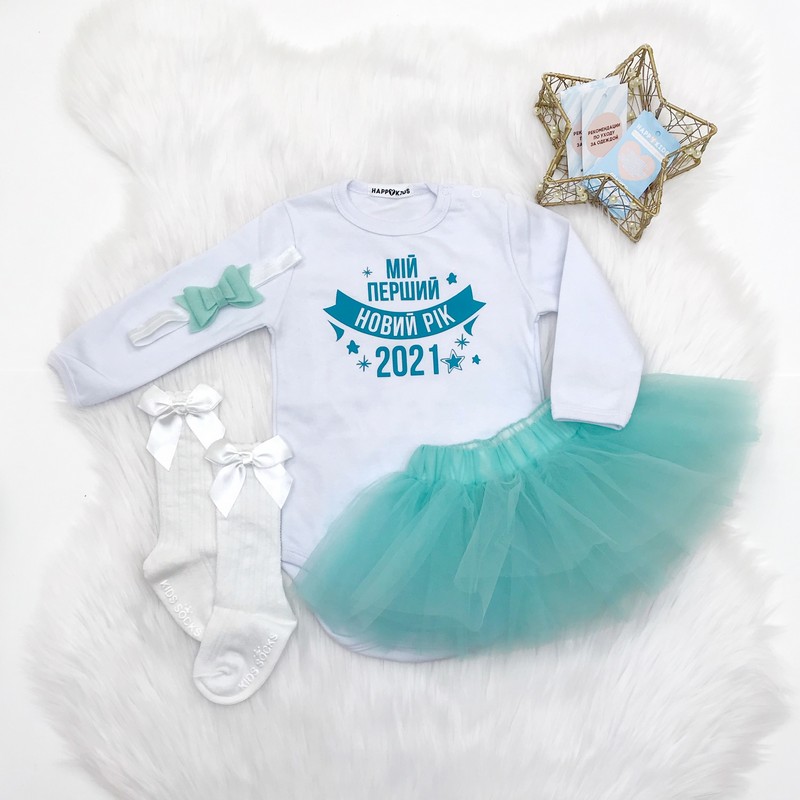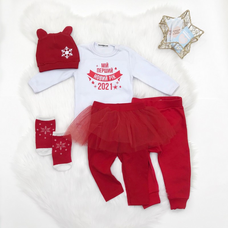 Нарядный универсальный боди подойдет мальчику и девочке. Дополняй любыми аксессуарами на свой вкус и создавай свой неповторимый новогодний образ.