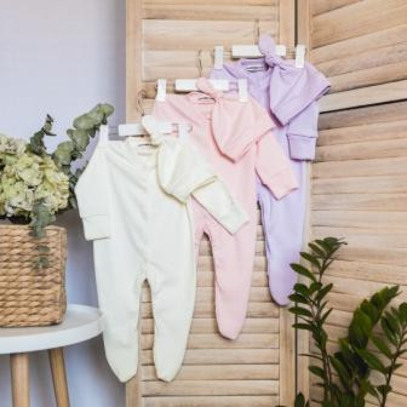 Удобный человечек на легко застегивающихся кнопочках и милая шапочка с узелком в тон.