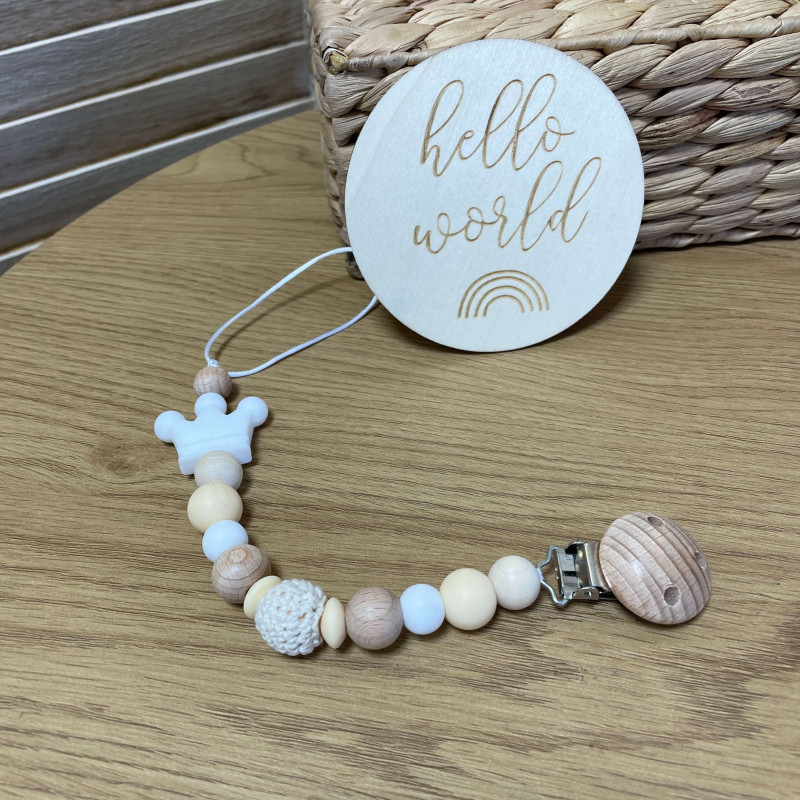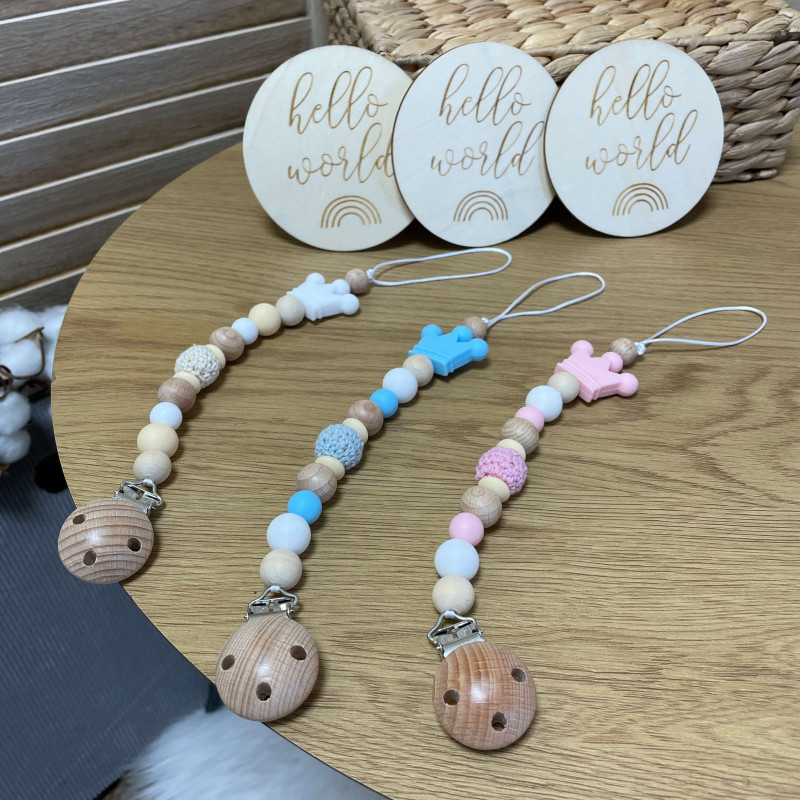 - Заказывайте уникальный держатель для пустышки с короной уже сегодня и сделайте драгоценный подарок своей новорожденной радости. Он также может стать отличным подарком для любого малыша.