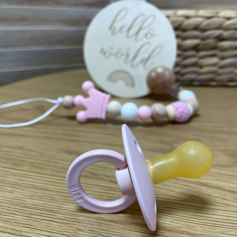 Держатель для пустышки с короной легок в использовании и очень практичен. Он не только удерживает пустышку в безопасном месте, но и помогает избежать потеря или загрязнения. Благодаря специальному дизайну, подходит для любой формы пустышки.