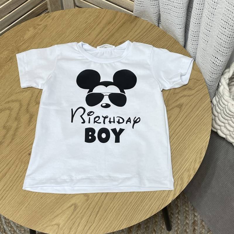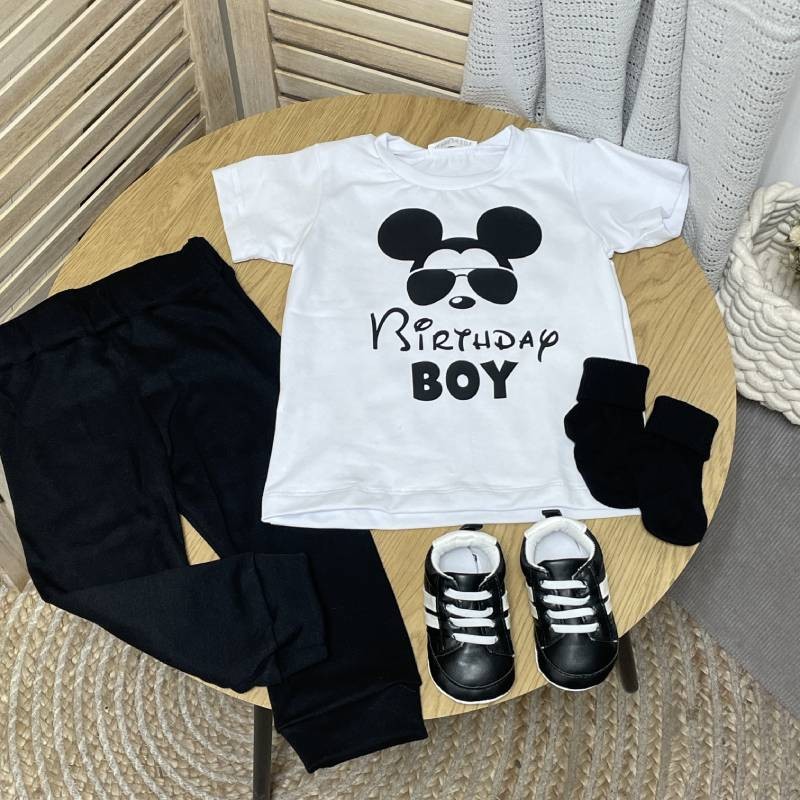 - Дизайн: стильная надпись "Birthday Boy" с мики маусом.