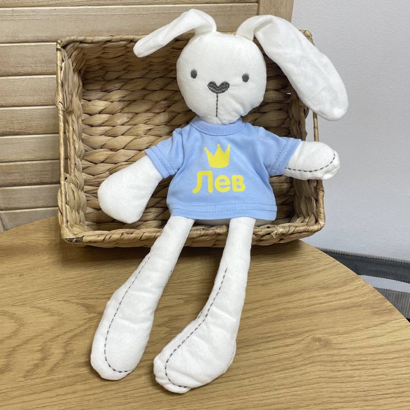Милый плюшевый зайчик с именем ребенка и короной – станет отличным подарком для младенца и станет первым лучшим другом ребенка.