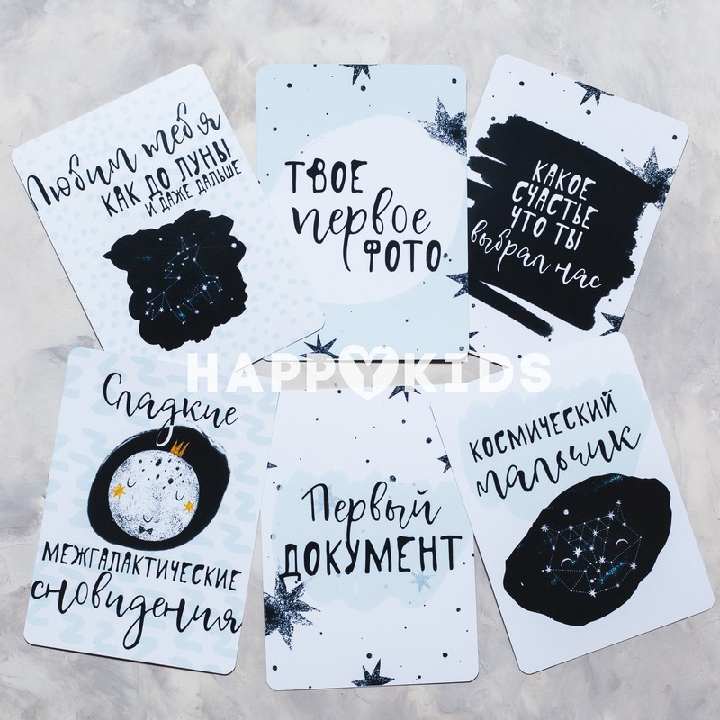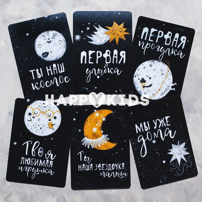 -6 плотных двусторонних картонных открыток с самыми незабываемыми и прекрасными моментами первого года жизни ребёнка.