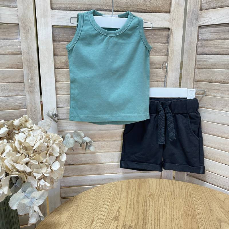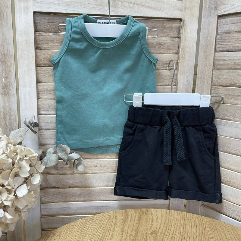 Сделайте летний гардероб мальчика комфортным и стильным с нашим летним комплектом для мальчика, включающего майку и шорты.