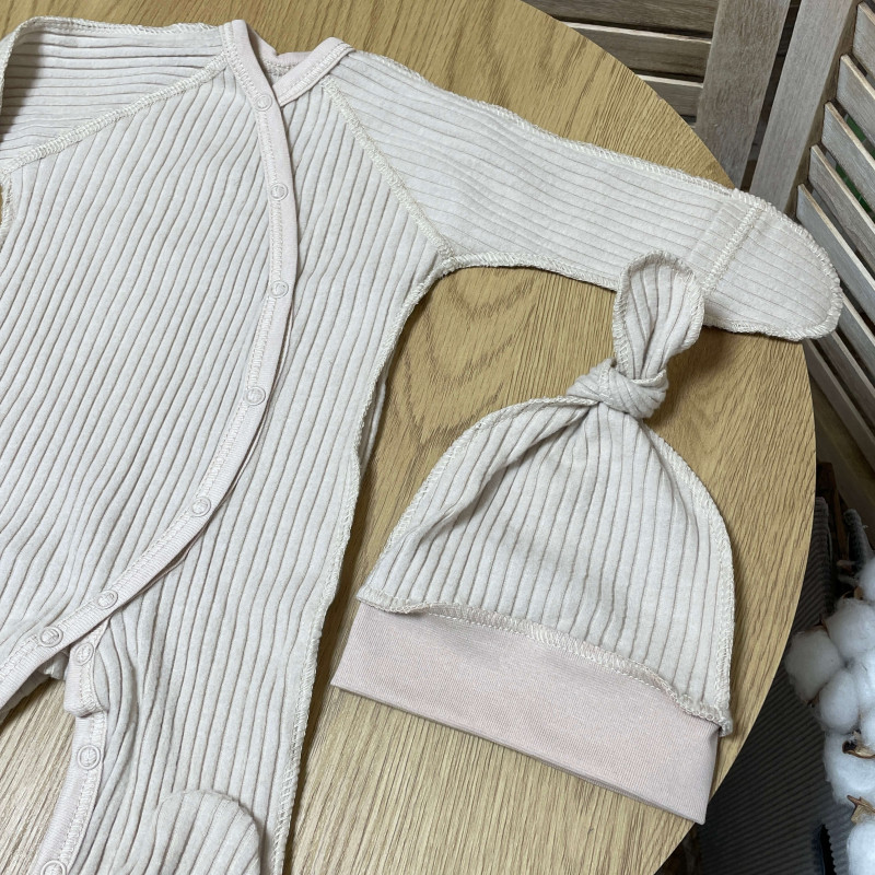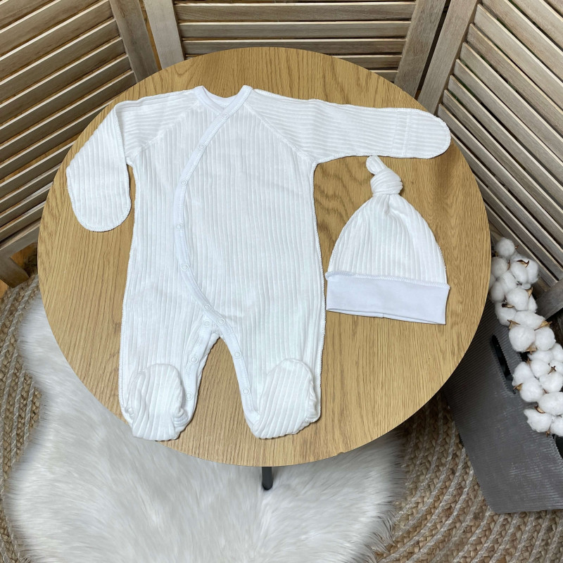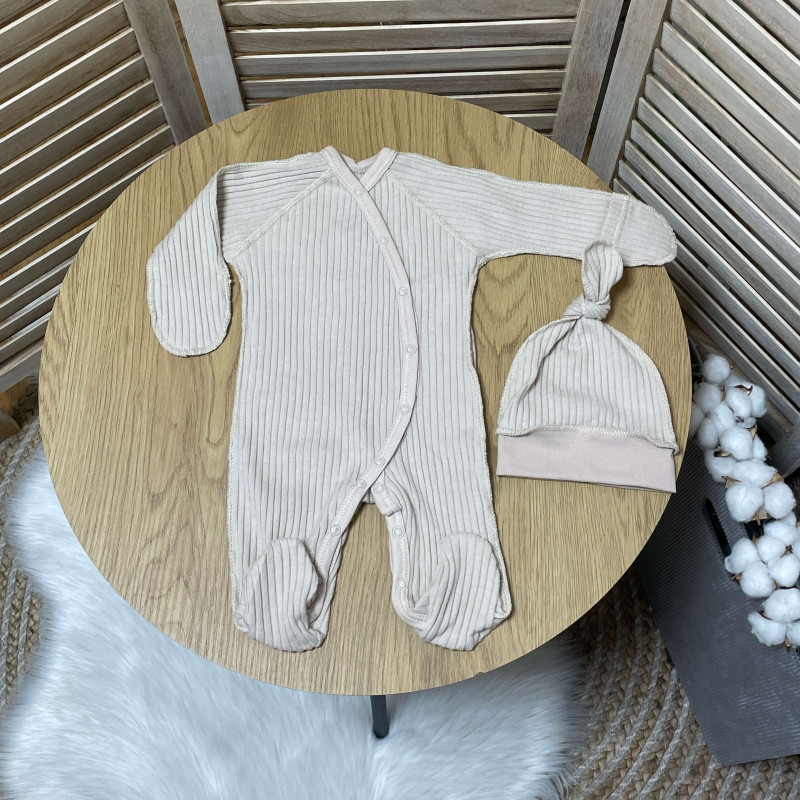 Приглашаем вас ознакомиться с непревзойденным комплектом для новорожденных – слип рубчиком и шапочкой.