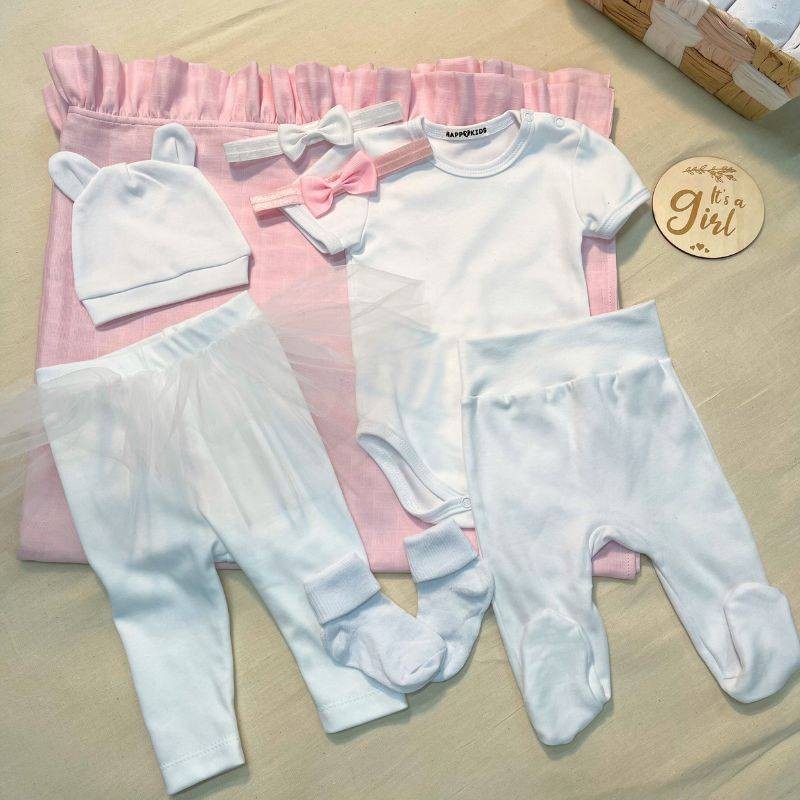 Летний комплект для девочки на выписку – идеальный выбор для теплого времени года. Созданный специально для новорожденных этот нежный набор сочетает комфорт, натуральные материалы и эстетику первого образа.