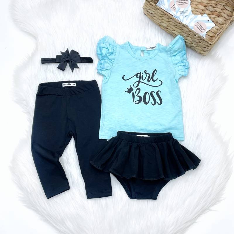 - Преимущества: универсальный комплект: можно комбинировать элементы между собой или носить по отдельности, эластичный крой обеспечивает полную свободу движений, гипоаллергенная ткань подходит даже для новорожденных, надпись "Girl Boss" – яркий акцент и стильная ссылка, подойдет для прогулок, праздников, фотосъемок или подарка.