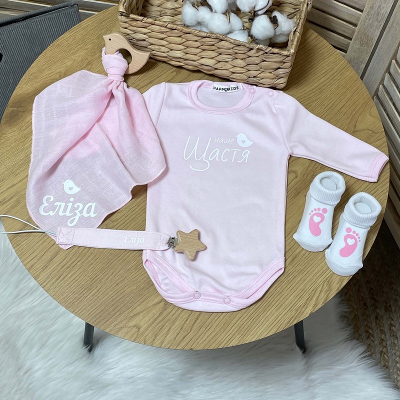 В комплекте: боди, носочки, именной держатель и платок с грызунком.