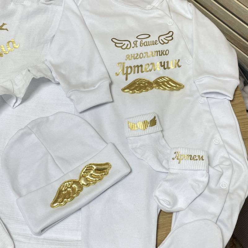 Этот крестильный набор именной, хорош как никакой другой во всех отношениях. Чего только стоит то, сколько предметов входит в комплект. Это комфортный человечек, теплые носочки, шапочка, и конечно же крыжма. При этом, каждый из них является именным. И мы можем предложить вам нанести на него любую надпись. Начиная от имени, и заканчивая поздравительными словами. Поэтому, такой крестильный набор способен не просто оправдать, но и превзойти все ваши ожидания.