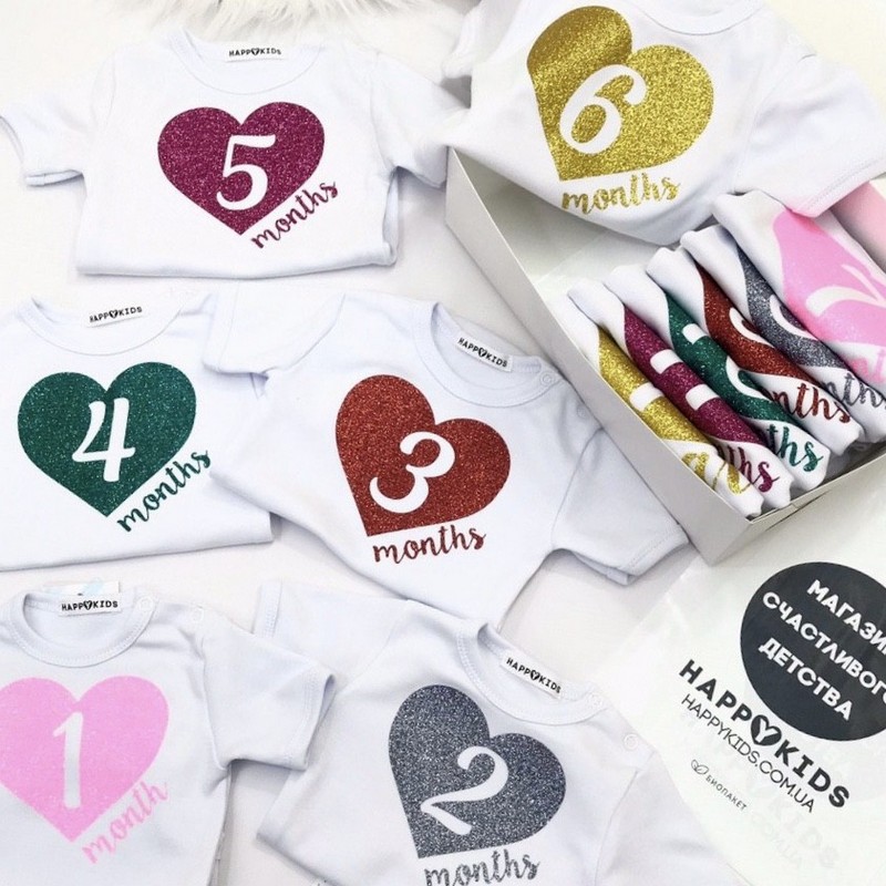 Размеры боди подобраны в соответствии с ростом ребенка в определенном возрасте