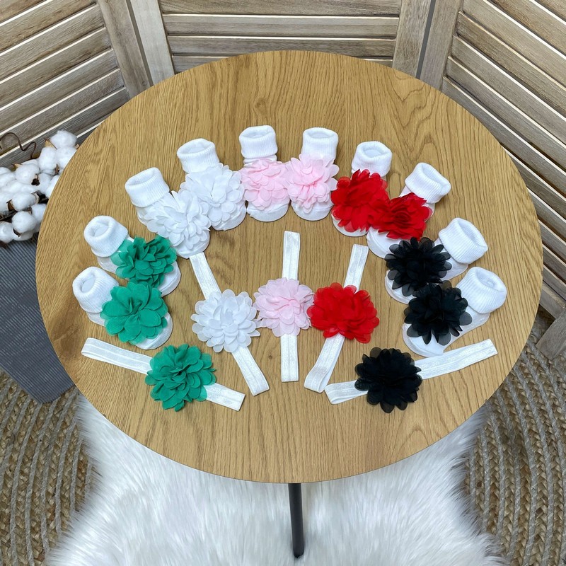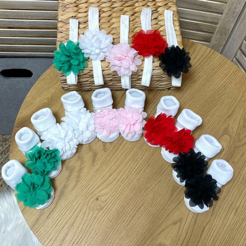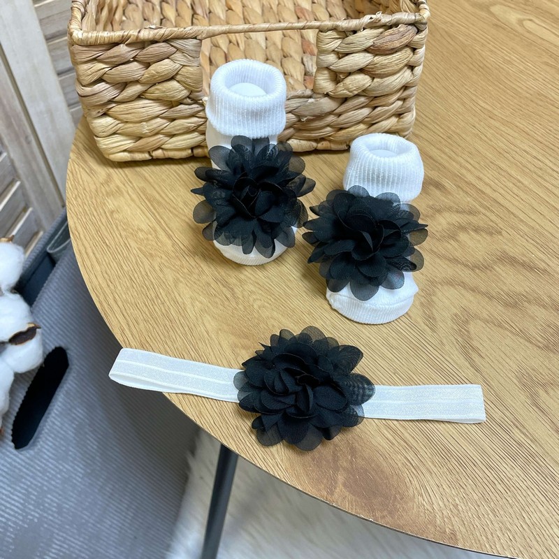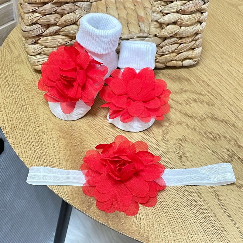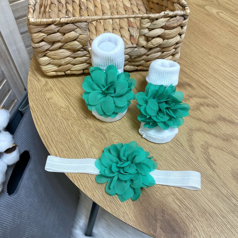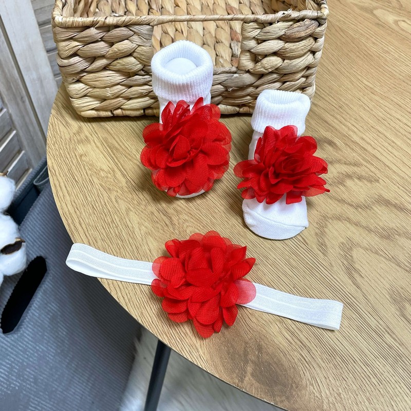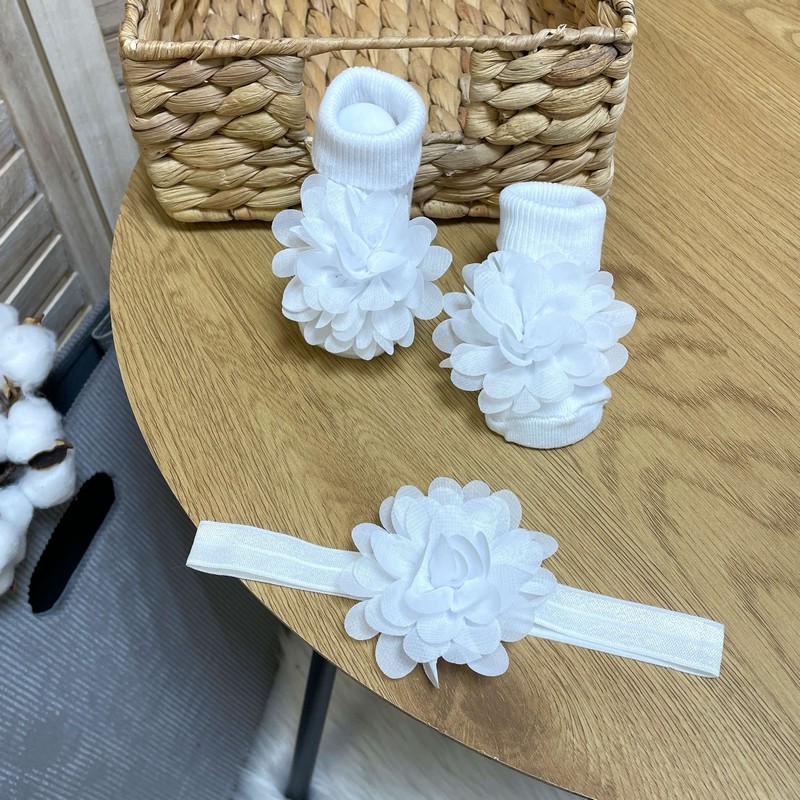 Нежные и милые праздничные носки с нежным цветочком. Повязка на резинке с украсит любую маленькую девочку. Идеально сочетается с боди и другими товарами для малышек