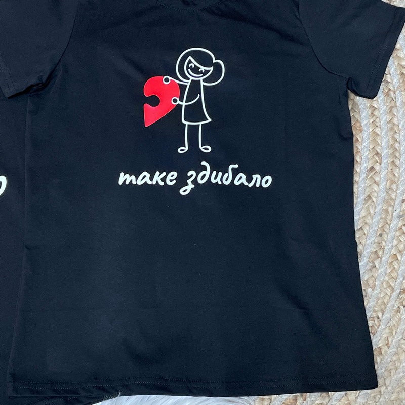 Замечательныеп парные футболки "Яке їхало, таке здибало", обязательно найдут массу поклонников и будут к лицу всем. Прежде всего благодаря универсальному черному цвету. Также, они прекрасно подойдут не только под джинсы, но и любой другой "низ".