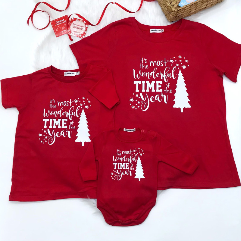 Создать свой набор новогодних футболок с надписью на выбор вы можете в нашем интернет-магазине одежды для всей семьи – "HappyKids".