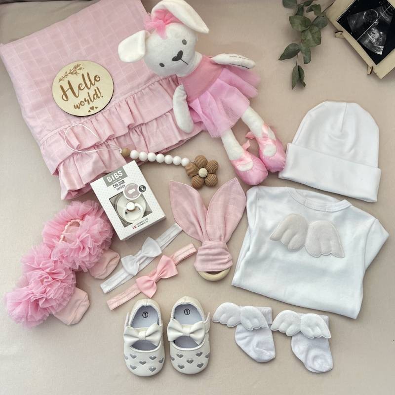 Подарочный бокс для новорожденной (премиум) — стильный набор, который станет идеальным подарком на выписку, baby shower или gender party. Все продумано до мелочей: нежные оттенки, премиальные аксессуары и праздничная упаковка создают вау-эффект уже с первого взгляда.