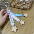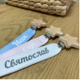 Наш именной держатель для соски – это идеальный аксессуар для новорожденных, который поможет сохранить соску всегда в безопасности и порядке. Изготовлен из деревянного держателя и тканевой основы, удобен для ребенка и обеспечивает максимальный комфорт.