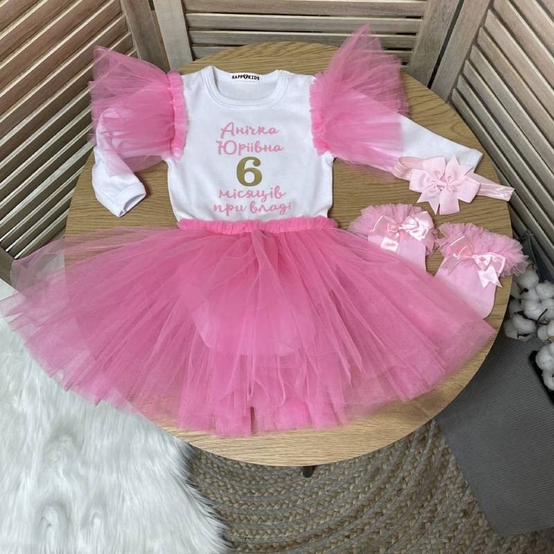 Праздничное именное боди-платье с надписью "6 месяцев у власти"