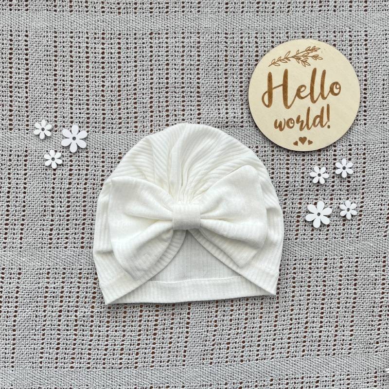 Характеристика товару: Шапочка-тюрбан для дівчинки з бантиком (рубчик)