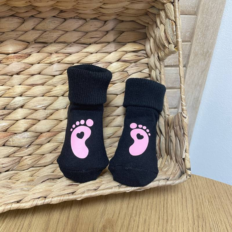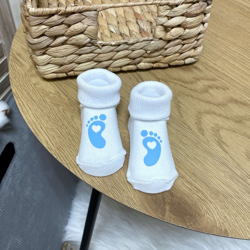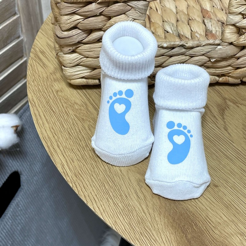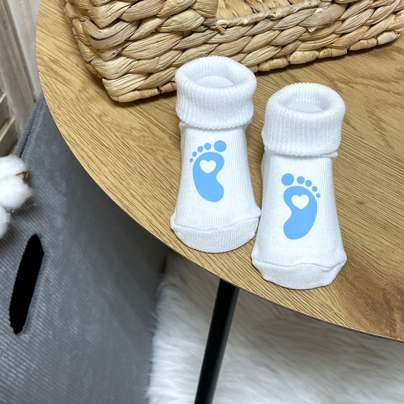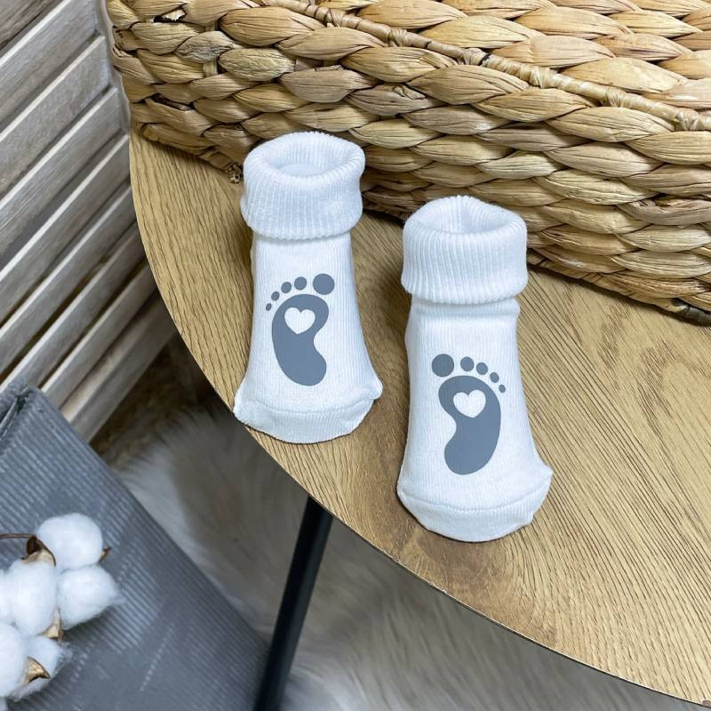 Принт ніжки на дитячих шкарпетках наноситься на замовлення, спеціально для вас, тому може бути будь-якого кольору.