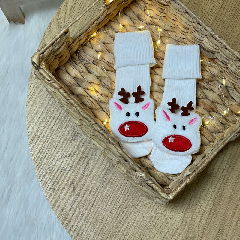 Гольфи-гетри дитячі для новонароджених на новий рік - еластичні, не пережимають ніжку, м'яка плюшева іграшка на порадує мам та діток Новорічні носочки для малюків з іграшкою: чарівний додаток до святкової атмосфери
